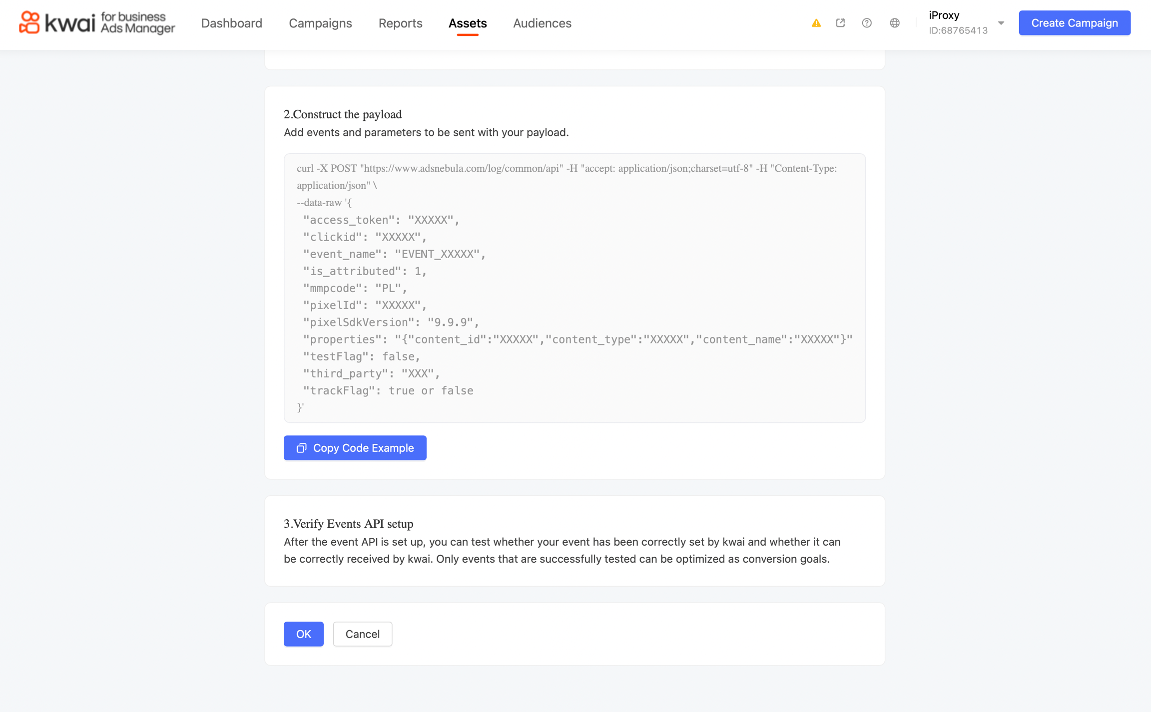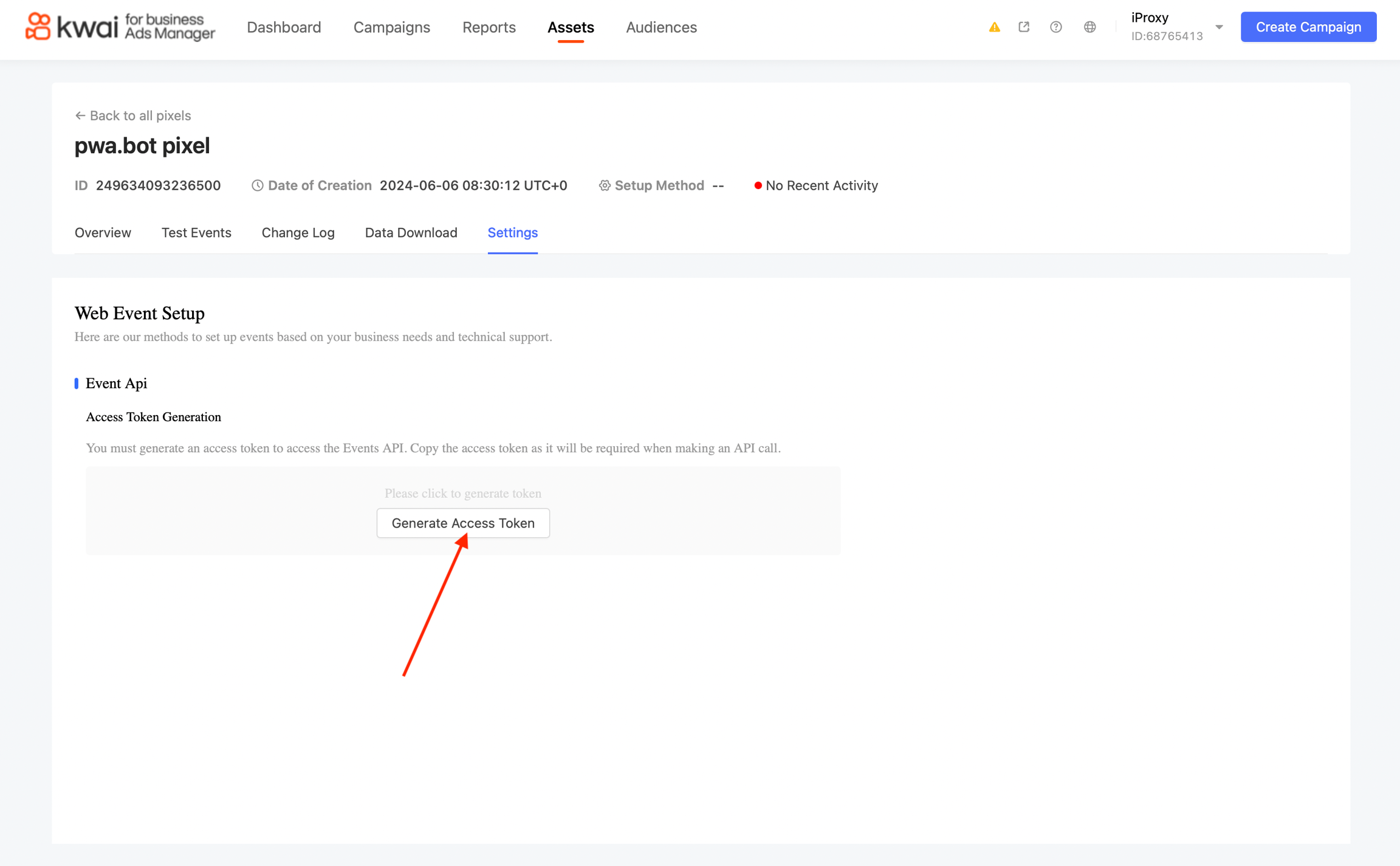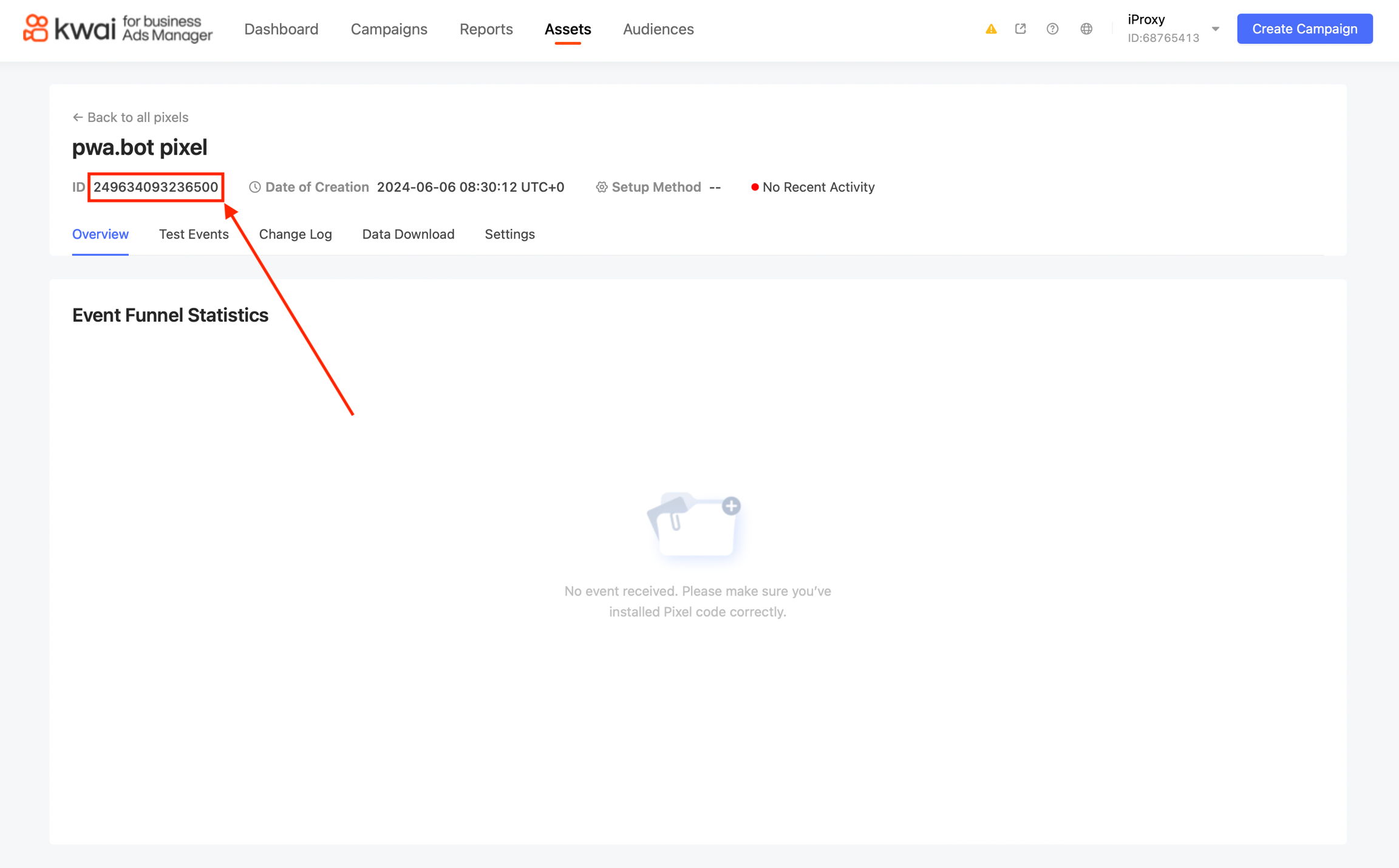 Возвращаемся в Kwai Ads manager в раздел Test Events. И копируем тестовый Click ID.