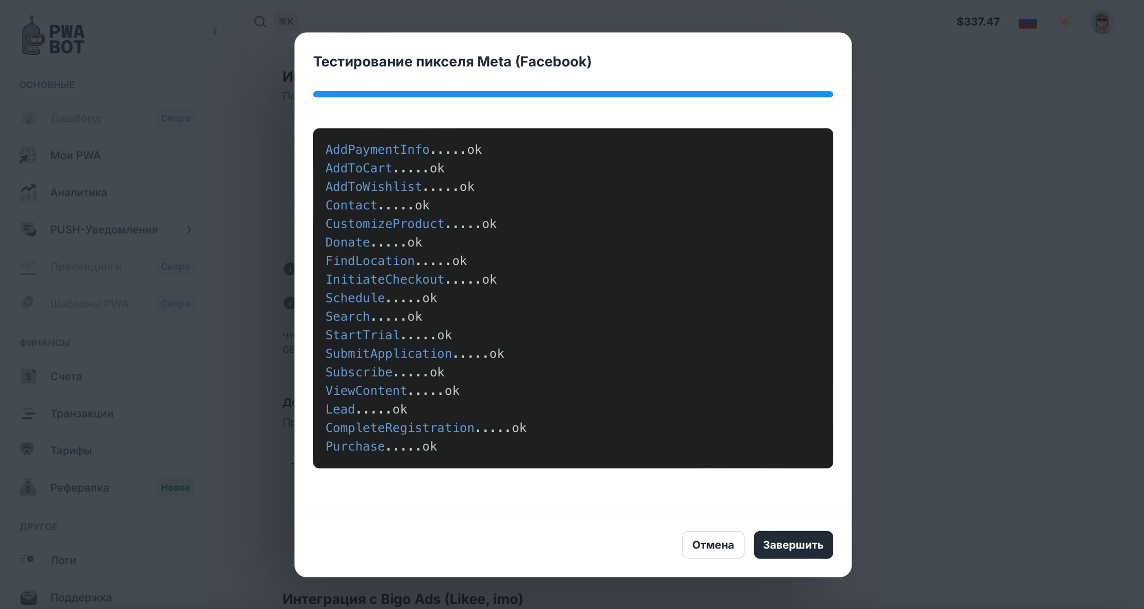 На последнем шаге, вернитесь обратно в Facebook и удостоверьтесь, что все отправленные события корректно отображаются.