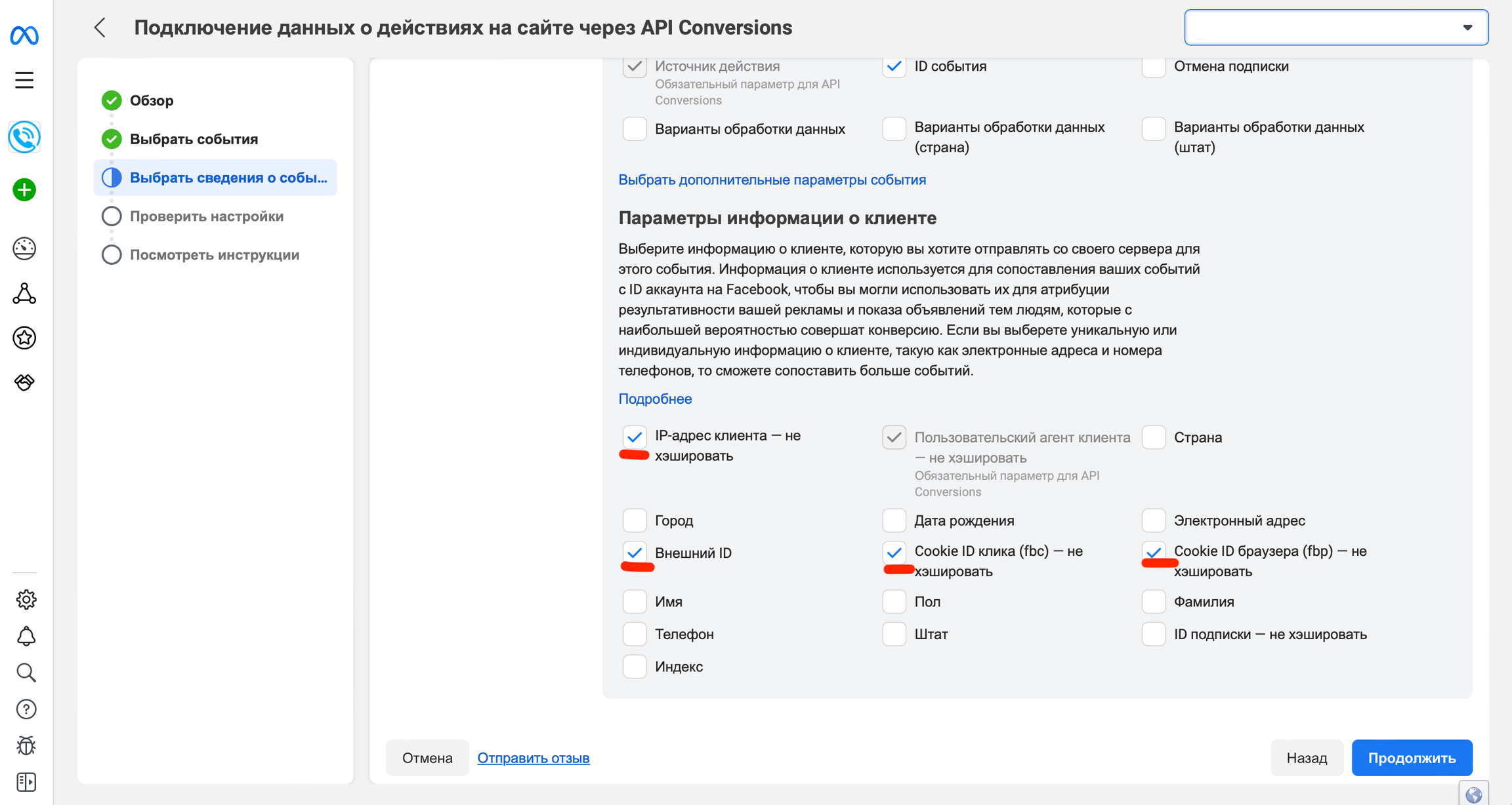либо же добавить в ссылку параметр fbp=8923749823498237, где вместо 8923749823498237 нужно вставить id вашего пикселя (датасета). Это удобно делать прямо в Ads Manager через Создать параметр url: